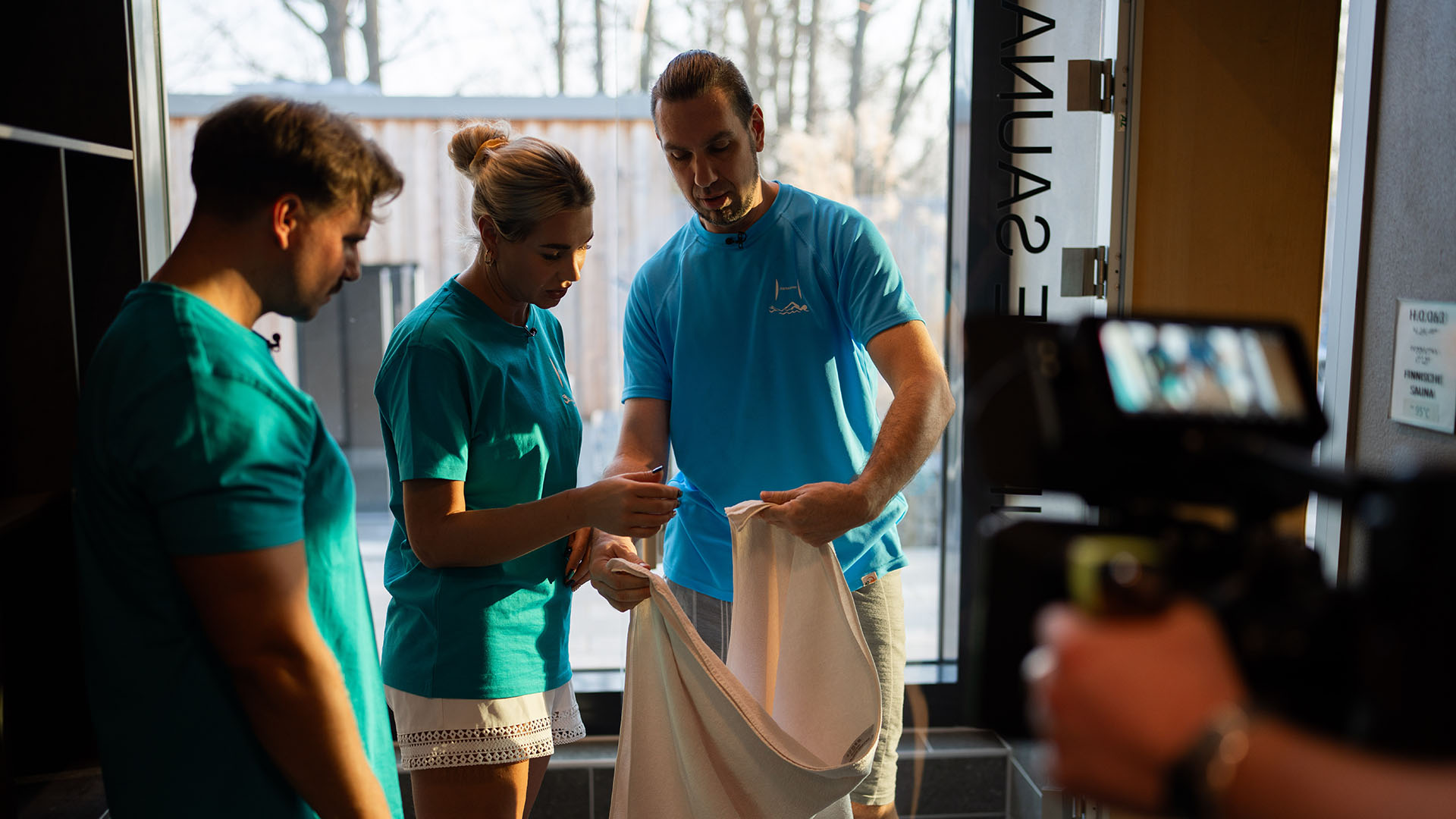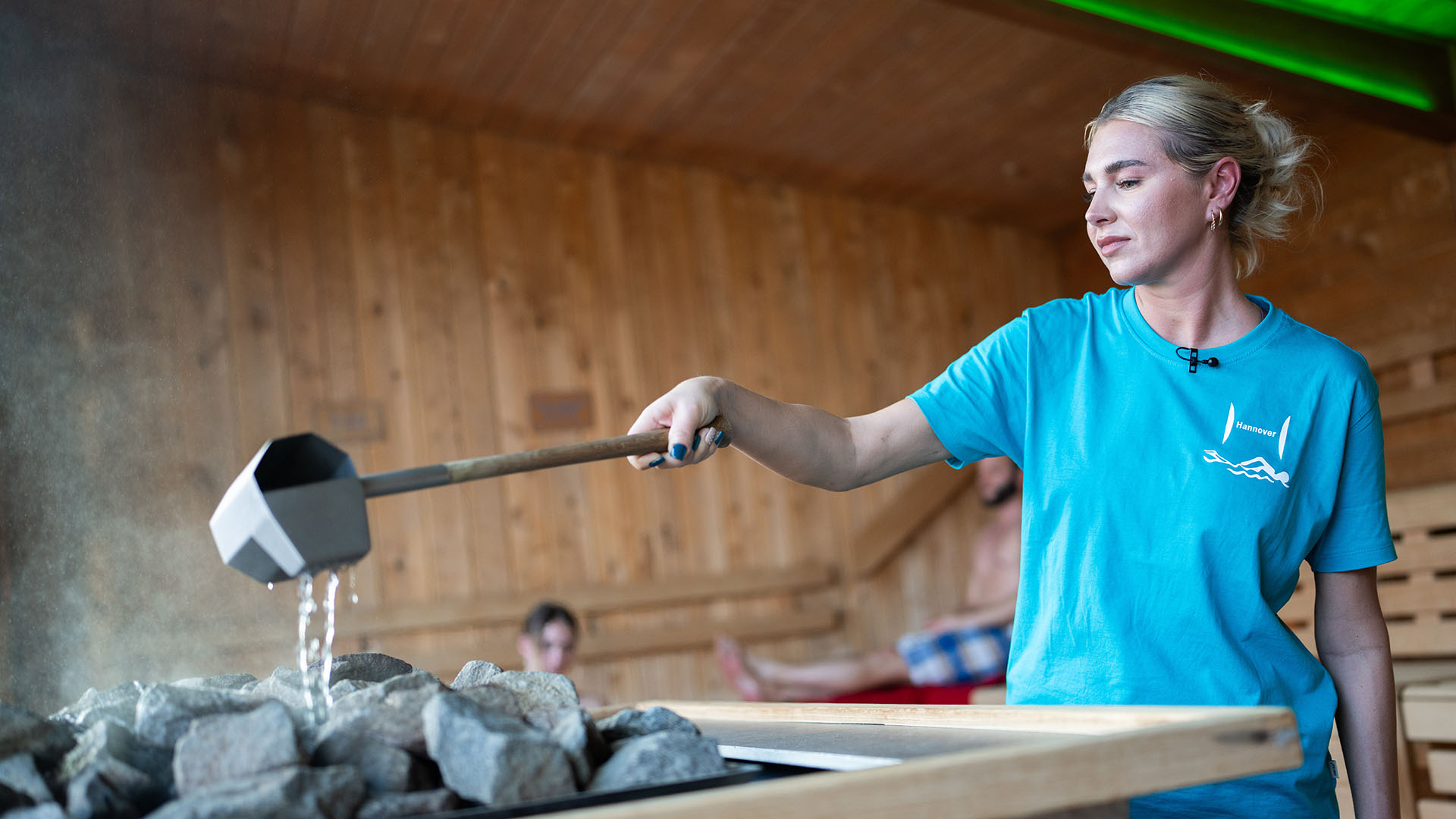 Doch der Beruf besteht aus weit mehr als Technik. Nachdem die Werte geprüft sind, wird es für Sascha sportlich: Gemeinsam mit Nando startet er in den ersten Aquagymnastikkurs des Tages. Sandra hingegen erhält von Micha, ebenfalls Fachangestellter für Bäderbetriebe, im Saunabereich Einblicke in die Kunst der richtigen Aufgusstechnik.